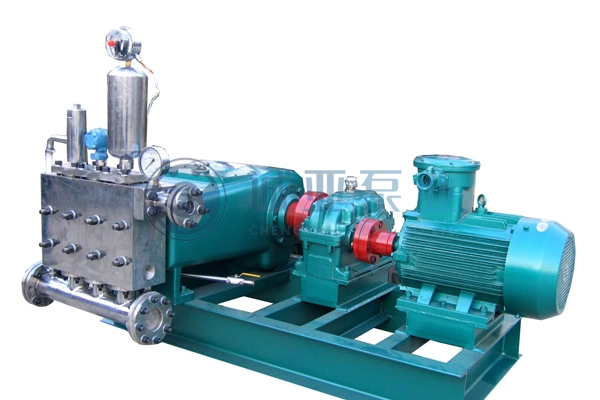 高压往复泵是由电动机、联轴器、减速器、传动部分、泵头部分、公共底座等组成。它是由电动机通过减速器、皮带传动或无级调速器,带动曲轴旋转,推动连杆经滑块〔十字头〕使柱塞作直线往复运动,在泵头进口阀的启闭作用下达到吸排液目的。